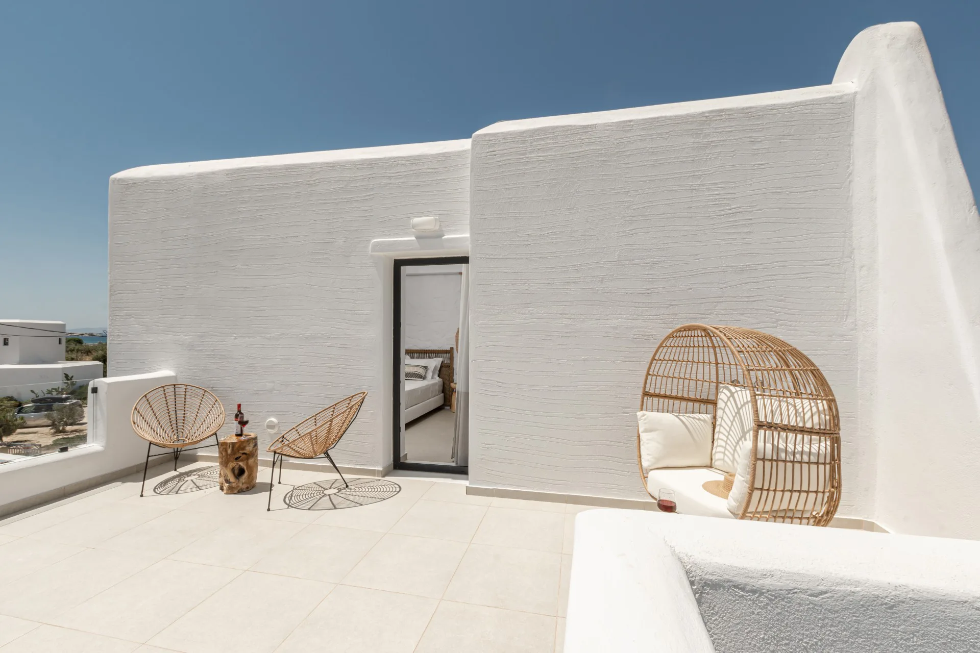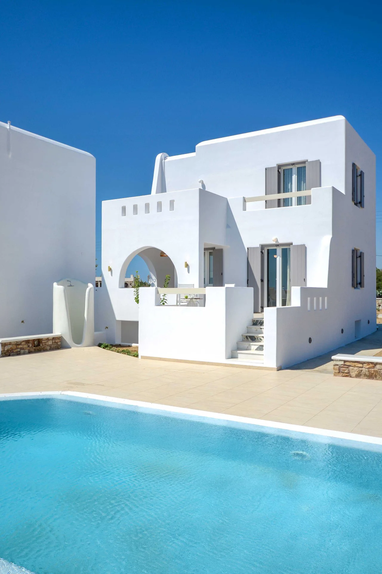 The private villas have been designed with all modern comforts in mind, and are all built according to the Cycladic architectural style with a modern touch. They are tastefully decorated, providing a unique staying experience.