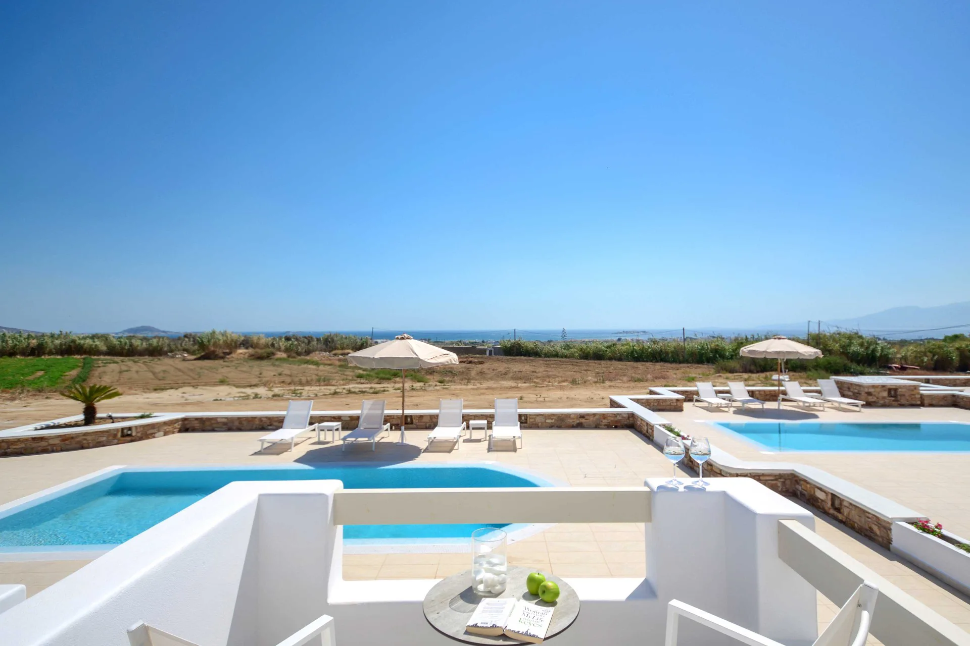 Air-conditioning and modern amenities ensure effortless relaxation. Exclusive pool with a view, perfect for sunset cocktails.
